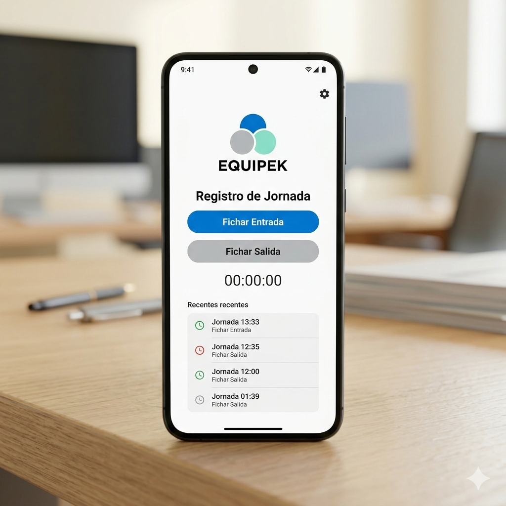 EquipeK combina servicios informáticos (remoto/presencial), desarrollo web, integraciones y tus productos: Registro de Jornada y Facturación.